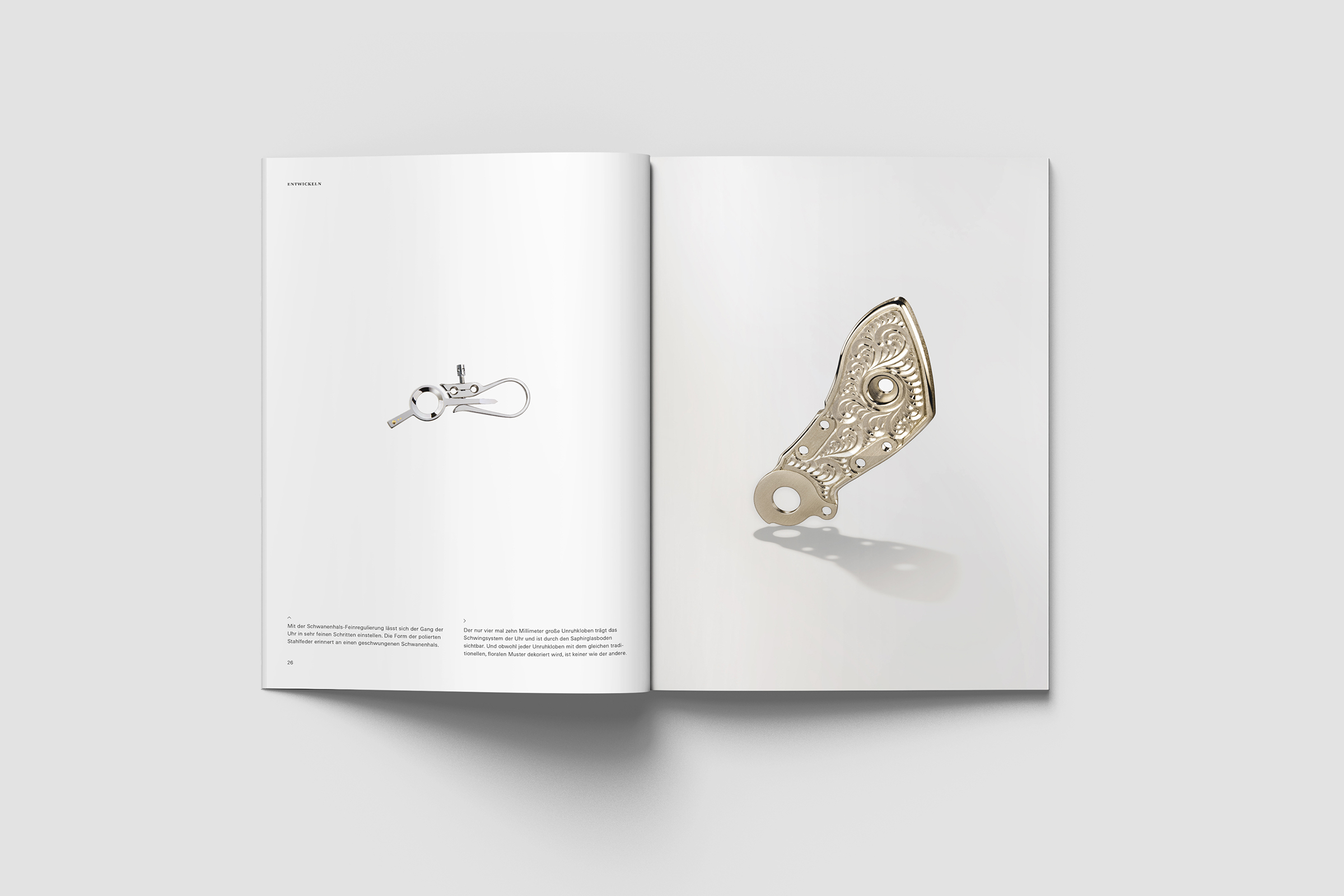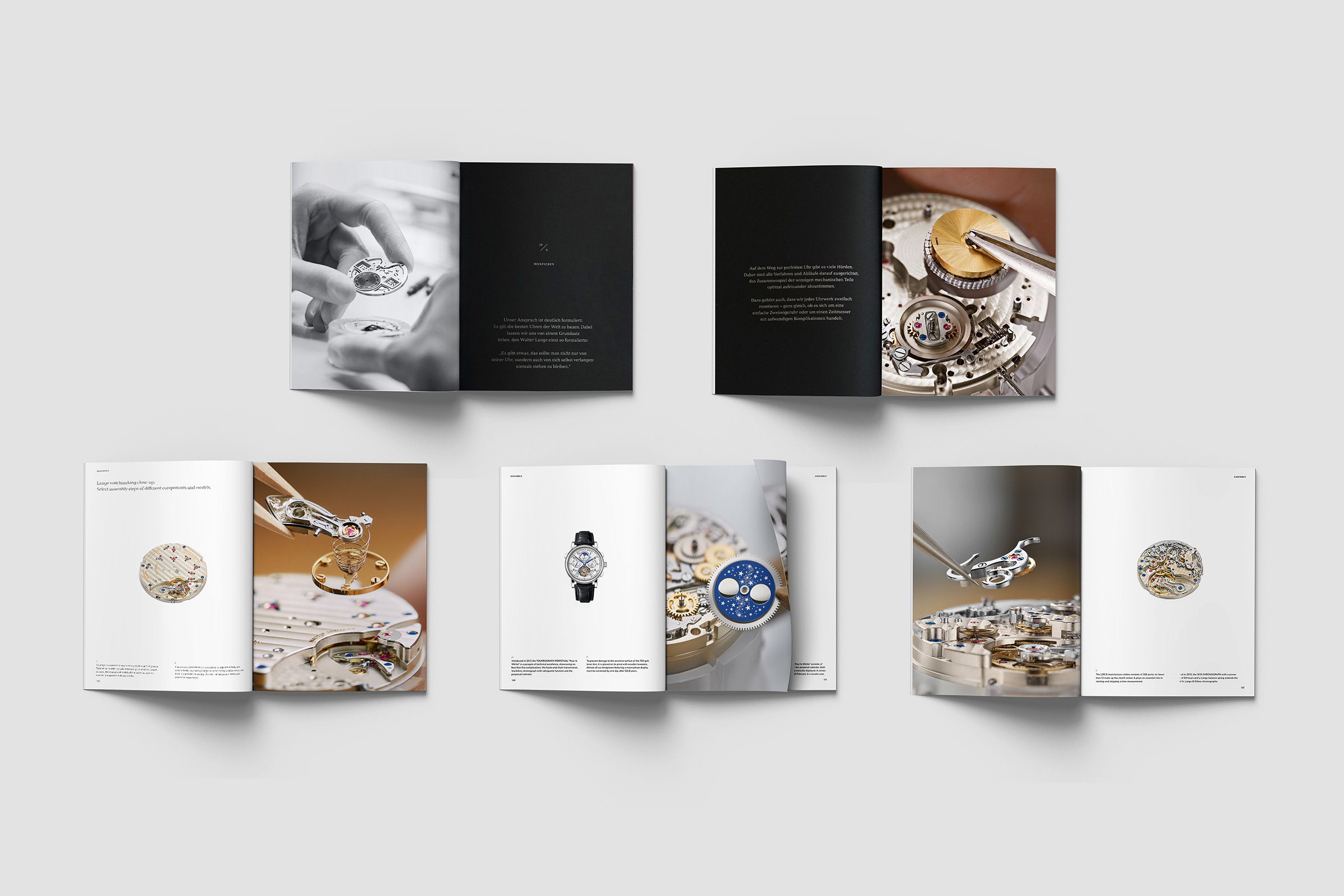 I am delighted to present the new “The Lange way to the watch” book. In this project, I was responsible for the graphic design, including layout creation. The book offers an exclusive insight into the manufactory and production processes behind A. Lange & Söhne watches. I translated the craftsmanship and precision into a design that is clean and elegant. The book was printed in Pantone Silver and Pantone Gold, along with spot colors for both the German and English editions, to emphasize the brand’s exclusivity.